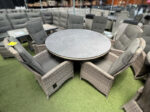6 Seat Aluminium Rattan Reclining Garden Dining Set 150cm