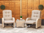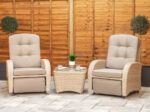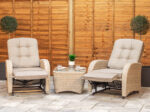 2 Seat Aluminium Rattan Reclining Bistro Set in Latte